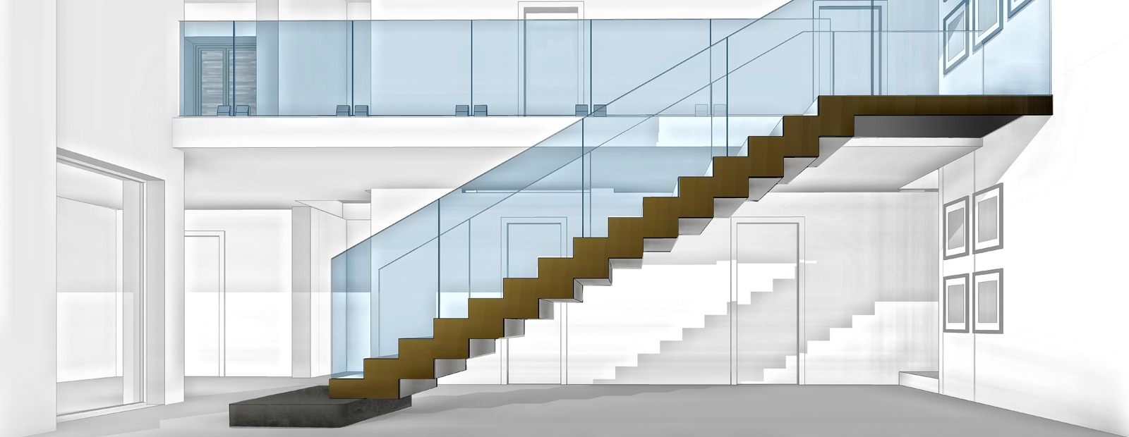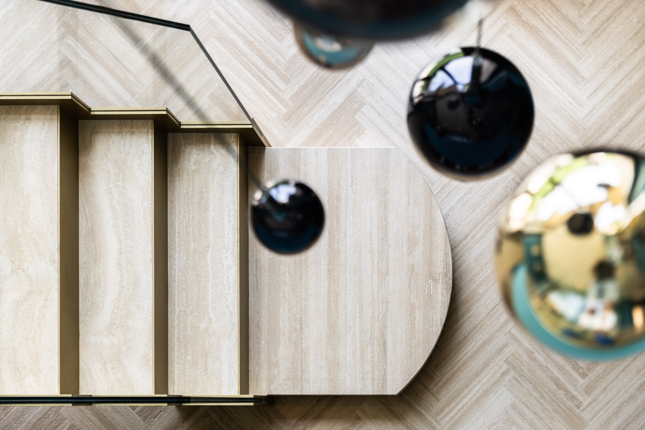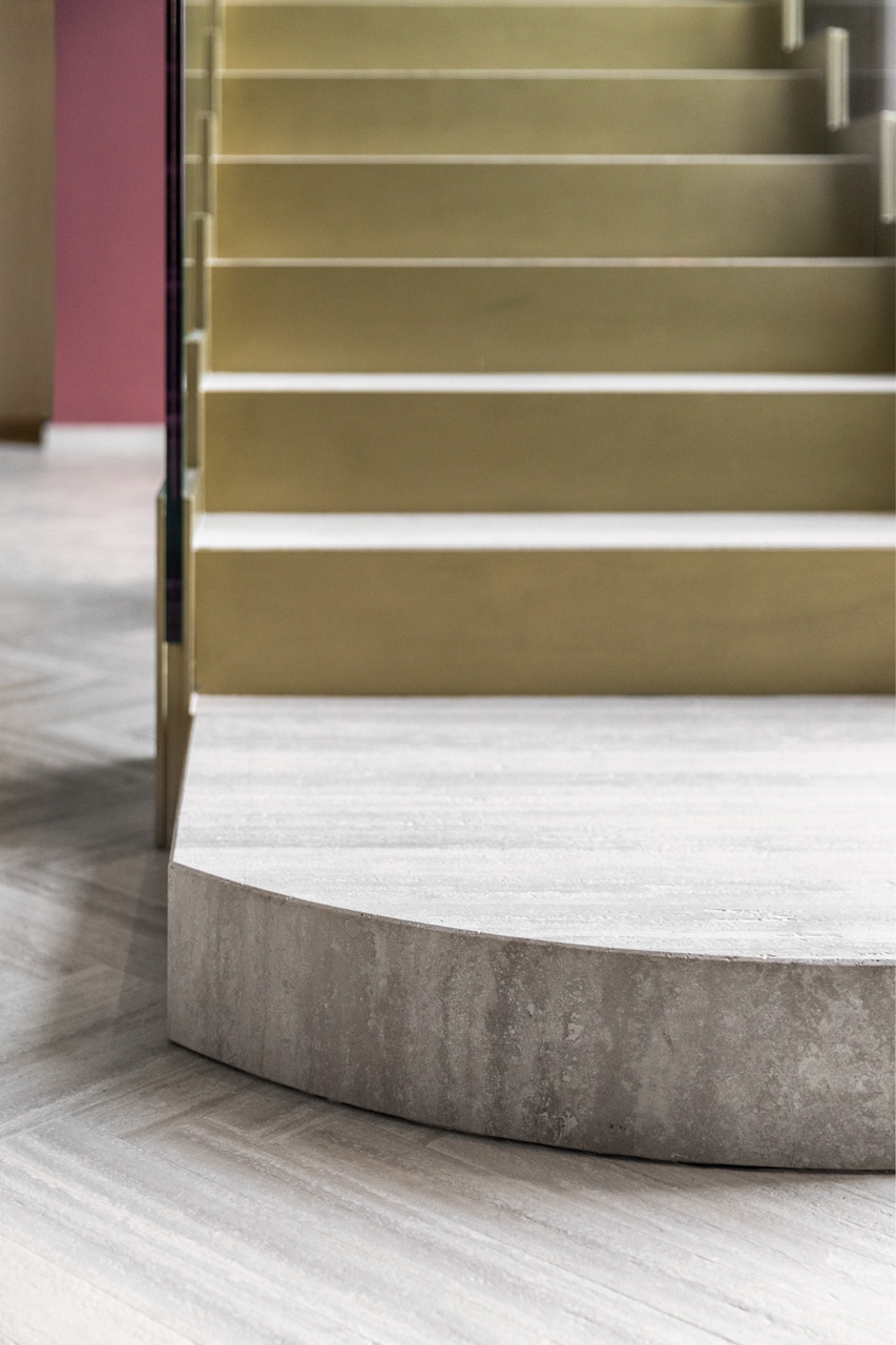 Lo studio di architettura ha curato lo studio, la progettazione e la realizzazione di una scenografica scala interna per una villa privata, combinando eleganza formale e precisione tecnica. Interamente realizzata in pietra travertino, la scala si distingue per la pulizia delle linee e la continuità materica, valorizzata dall’inserimento di paratie laterali in cristallo trasparente che ne esaltano la leggerezza visiva e il dialogo con lo spazio circostante. Il progetto rappresenta un perfetto equilibrio tra solidità strutturale e raffinatezza contemporanea.