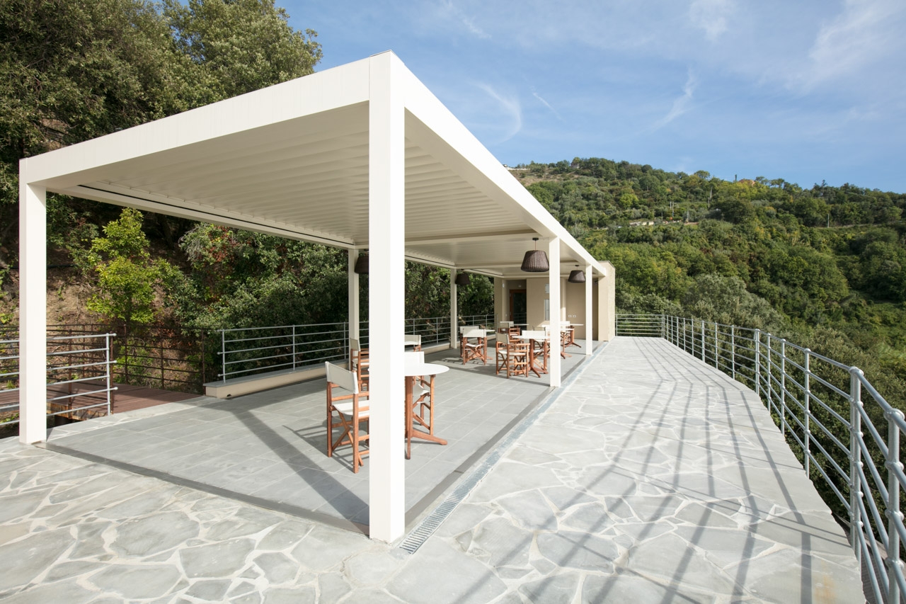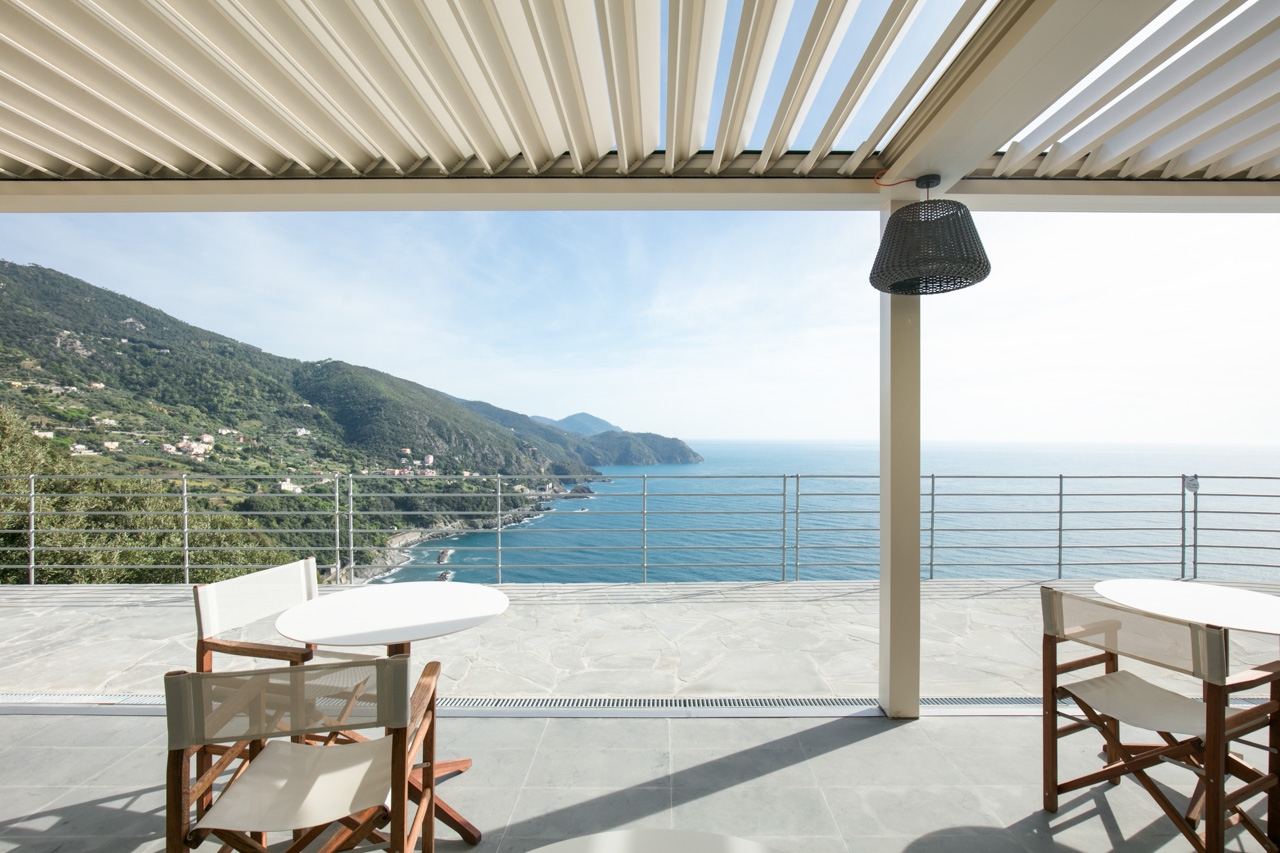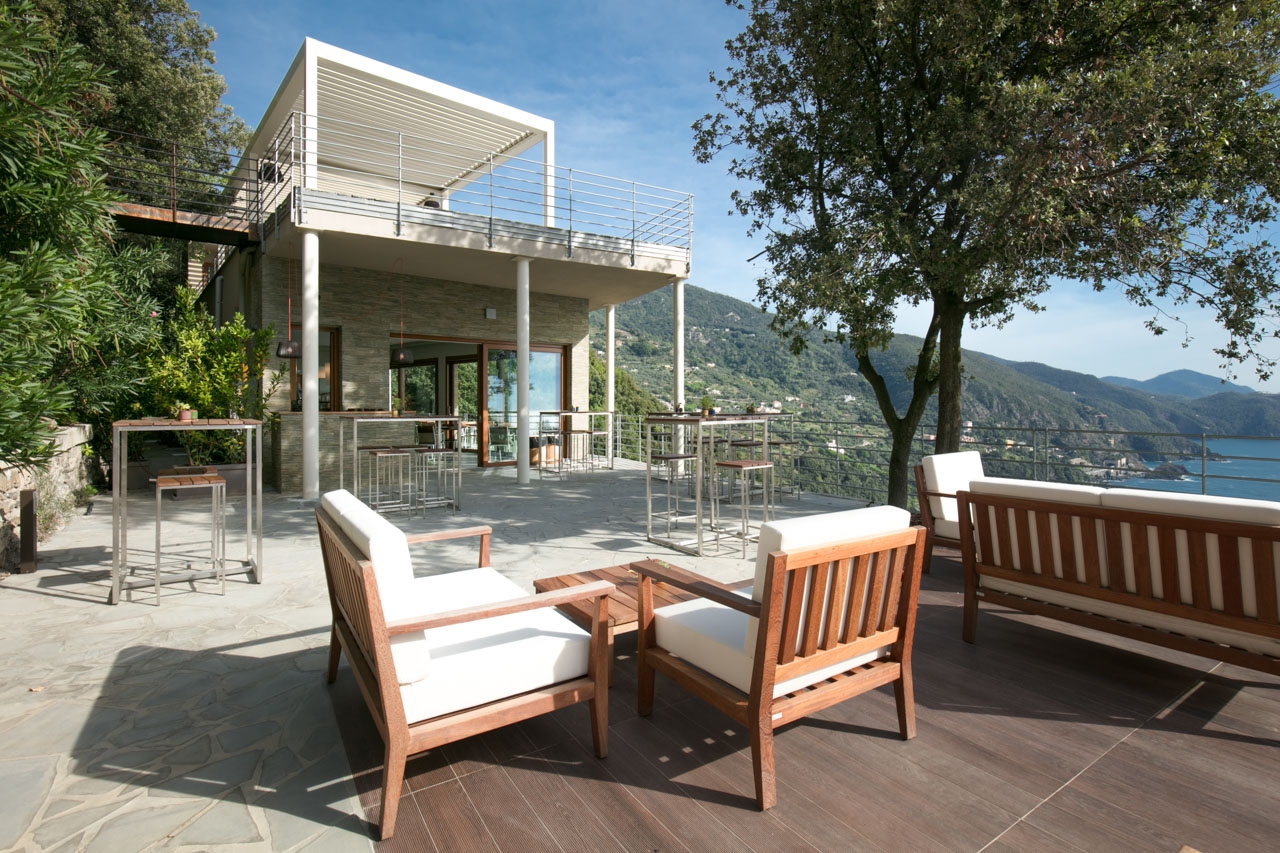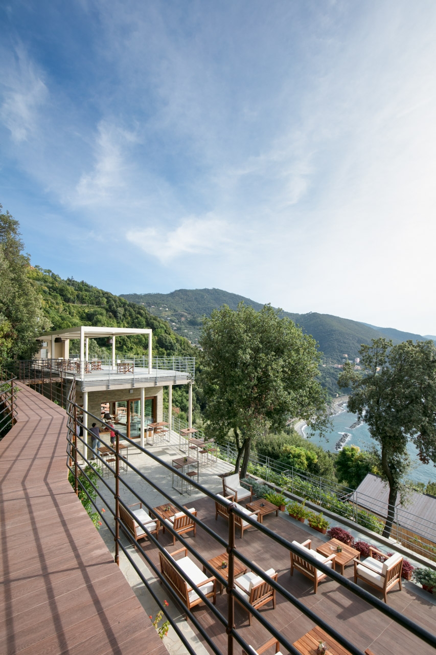 Un progetto ambizioso, fatto di eleganza che comunica fluentemente con l'ambiente. Situato a Framura, in provincia di La Spezia, la struttura esalta al massimo l'aspetto naturalistico del contesto in cui si trova. Affacciato dall'alto sul mare, è un vero gioiello di questo antico borgo alle porte delle Cinque Terre.